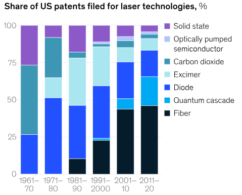 Innovations and US patents filing for photonics technologies have evolved over time.
